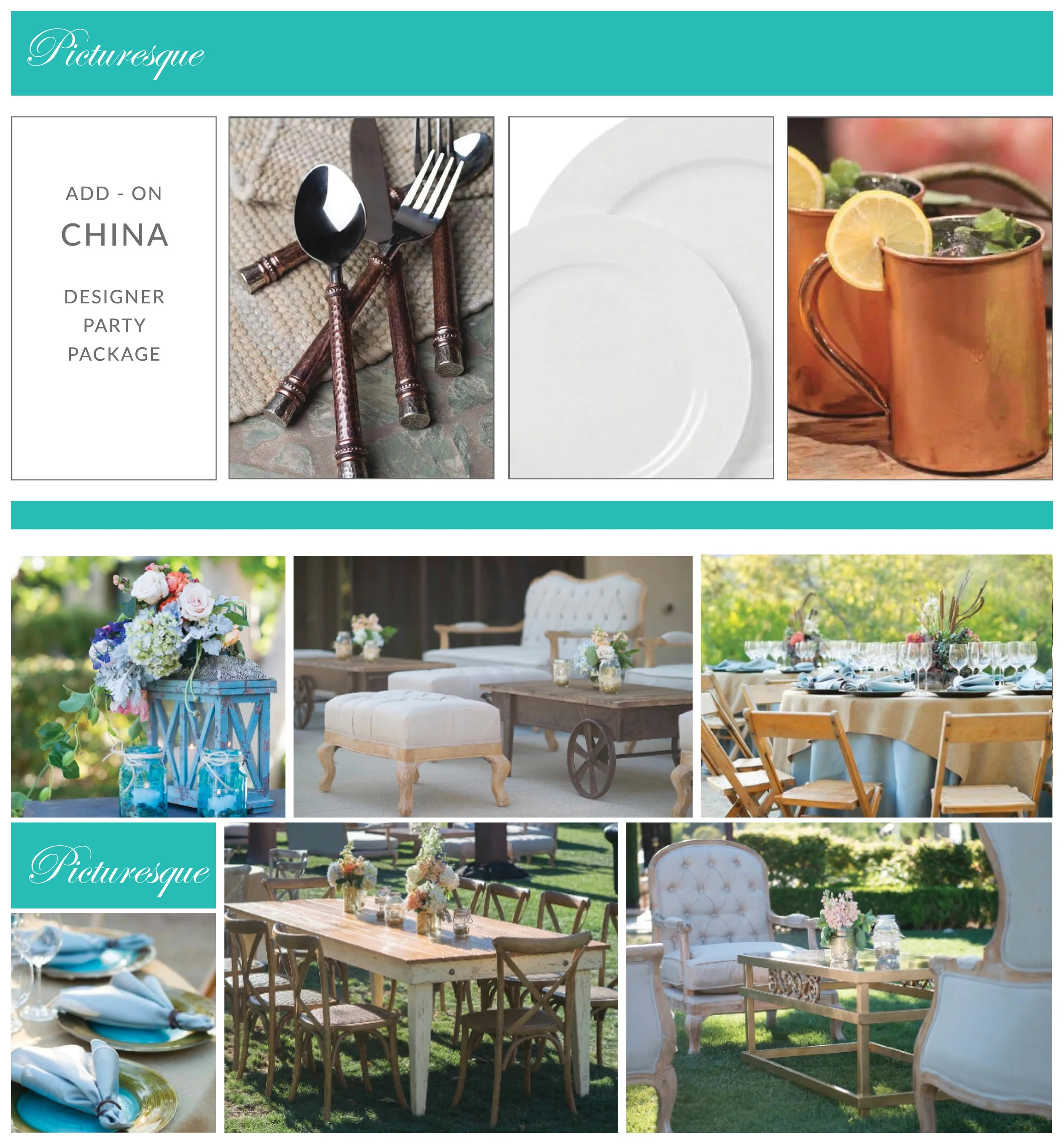 This package may only be purchased as an ADD-ON to the Picturesque Dining Package. Delivery and pickup is included for all add-on packages.